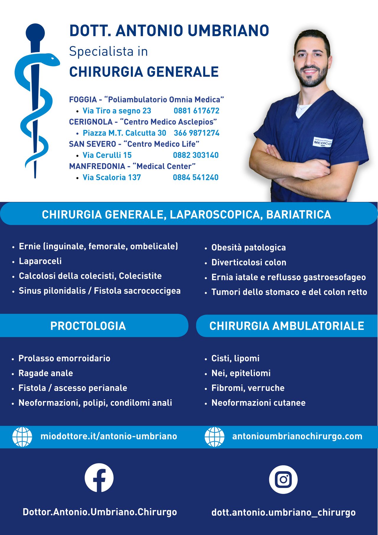 Il Dott. Umbriano lavora attualmente come Dirigente Medico presso il reparto di Chirurgia Generale, Laparoscopica e Bariatrica della Casa di Cura privata "Villa Igea" di Foggia.